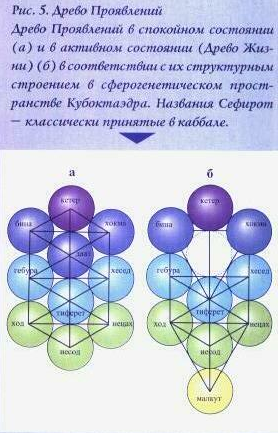 Следующая генерация Кетер порождает новое объемлющее пространство, охватывающее трехсетовый Кубоктаэдр и т.д. Древо Проявлений (мужской, активной ипостасью которого является Древо Жизни) имеет две боковых ветви, параллельных центральной колонне. (см. рис.4,5)