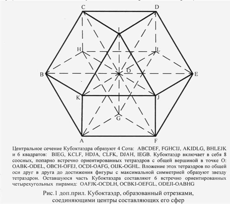 Практически это нашло свое отражение на «геометрическом языке» в дополнительном симметричном удвоении общего количества граней Кубоктаэдра (в них отражаются матричные коды) и их взаимной «зеркальности».